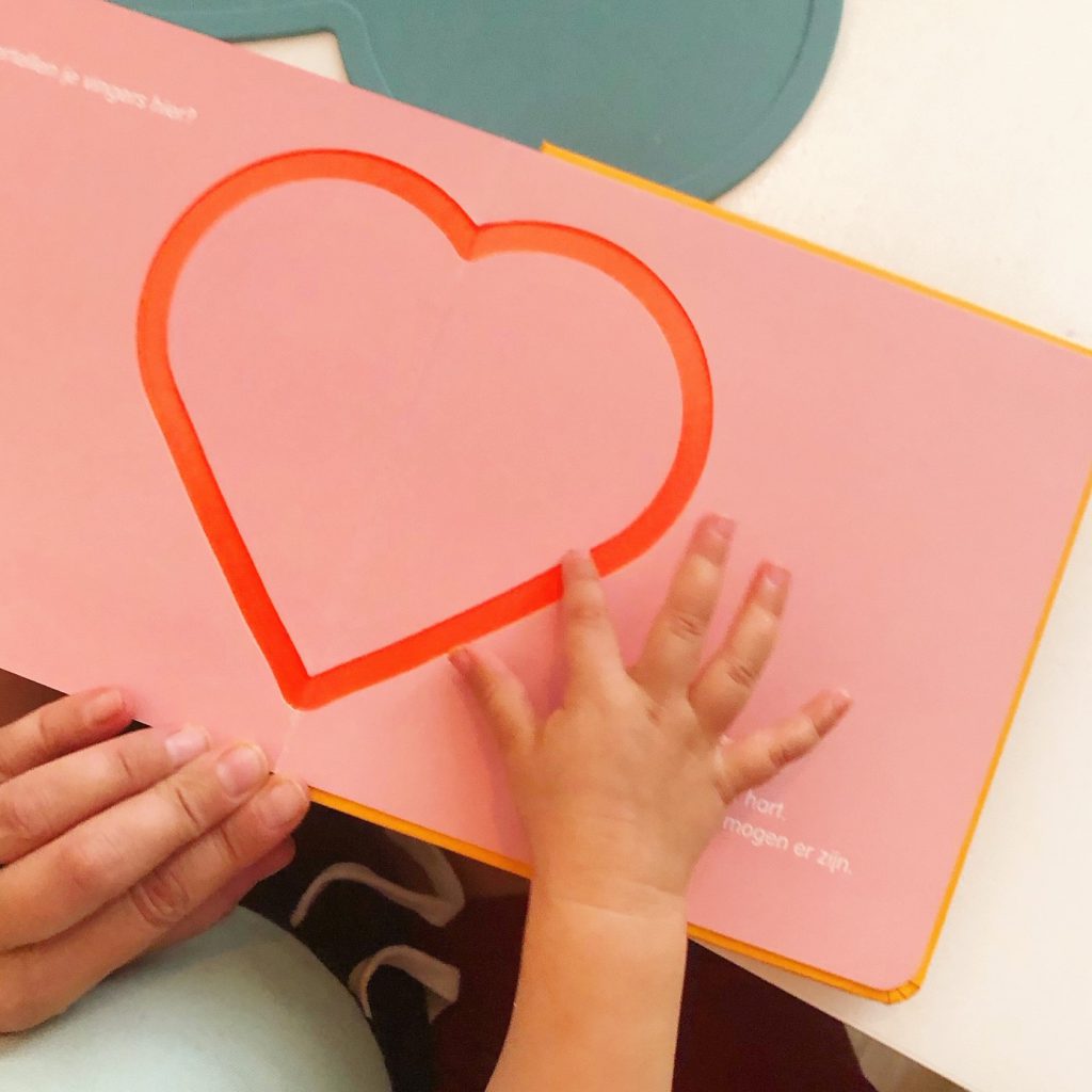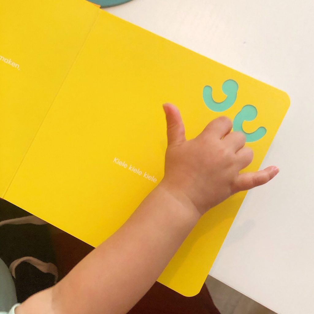 Ik had ‘Het zit in je vingers’ in eerste instantie voor mij oudste dochter in gedachten. Klinkt misschien raar een babyboek voor een zesjarige. Maar mijn oudste dochter heeft motorische angst en in het kort betekend dit dat haar hersens en evenwichtsorgaan nog geen vriendjes zijn. De verbindingen moeten allemaal geactiveerd worden en dan pas krijgt ze meer vertrouwen in dat ze iets kan. Simpele motorische bewegingen koppelen aan emoties is dus iets wat echt perfect is voor haar. Bij woest hebben we echt even moeten oefenen dat ze kracht in haar vingers mocht zetten en toen dat eenmaal lukte zag ik ook echt de emotie op haar gezicht en lichaam.