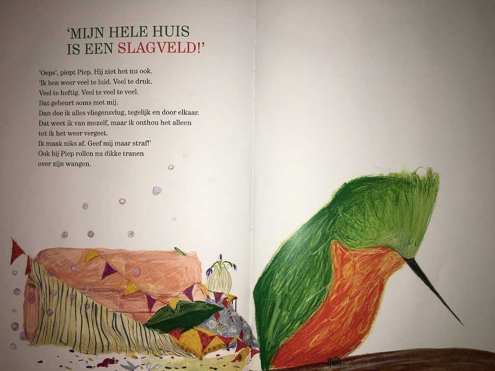 Wat ik zo leuk vind aan dit boek, is niet eens het verhaal zelf, maar het feit dat dit boek over dit onderwerp er is. Het is zo goed om dit onderwerp bespreekbaar te maken. Vaak is er het stempel van ‘alle dagen heel druk’, of ‘het drukke kindje uit de klas dat zo er altijd doorheen zit te roepen’. Het is fijn als je zo’n boek in de klas kunt voorlezen, om ook de goede kanten van ADHD eens te benoemen, en hier een mooi gesprek over te hebben. Want hoewel het niet altijd makkelijk is, weet het boek toch ook de mooie kanten van ADHD te benoemen. Hieper de piep!