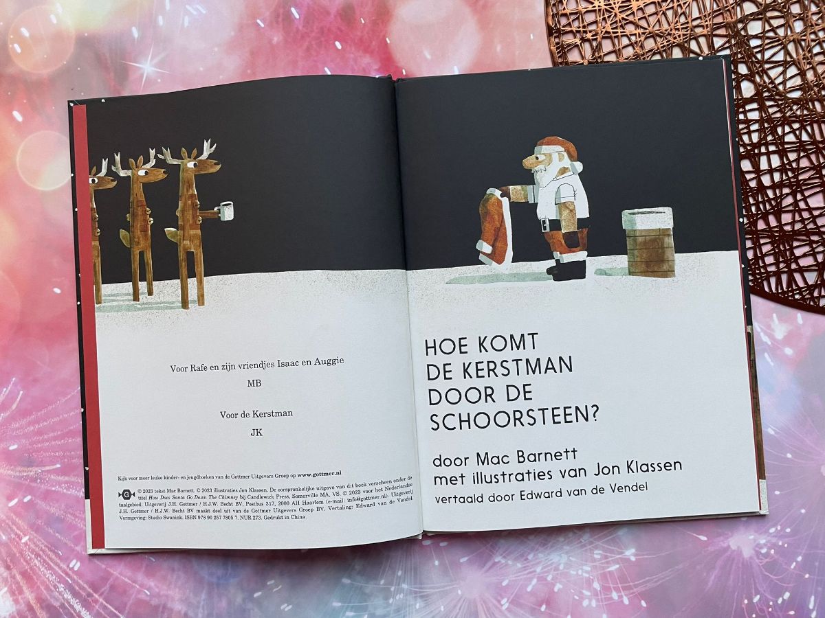 En dan ben je natuurlijk benieuwd of ik nu weet hoe de Kerstman eigenlijk binnen komt. Helaas niet. Maar dat zou natuurlijk ook wel heel bijzonder zijn, en sommige dingen moeten een raadsel blijven. De tekst van dit boek is geschreven door Mac Barnett. Hij heeft samen met Jon Klassen het boek ‘De drie broertjes Bok geschreven*’. Maar ook andere mooie boeken waarvan wij een review op de site hebben zijn ‘Een ijsbeer in de sneeuw‘ en ‘Gewoon omdat het zo is‘.
