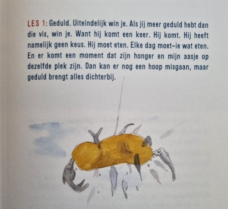 Waar les 7 ineens vandaan komt? Hoe vang je een grote vis? bevat een heleboel lessen. Over geduld hebben, het kleine waarderen, focus houden. En dat allemaal gericht op vissen, maar natuurlijk ook veel groter te maken. Zonder dat het overdreven is of belerend overkomt. Dat is het toffe van dit boek!