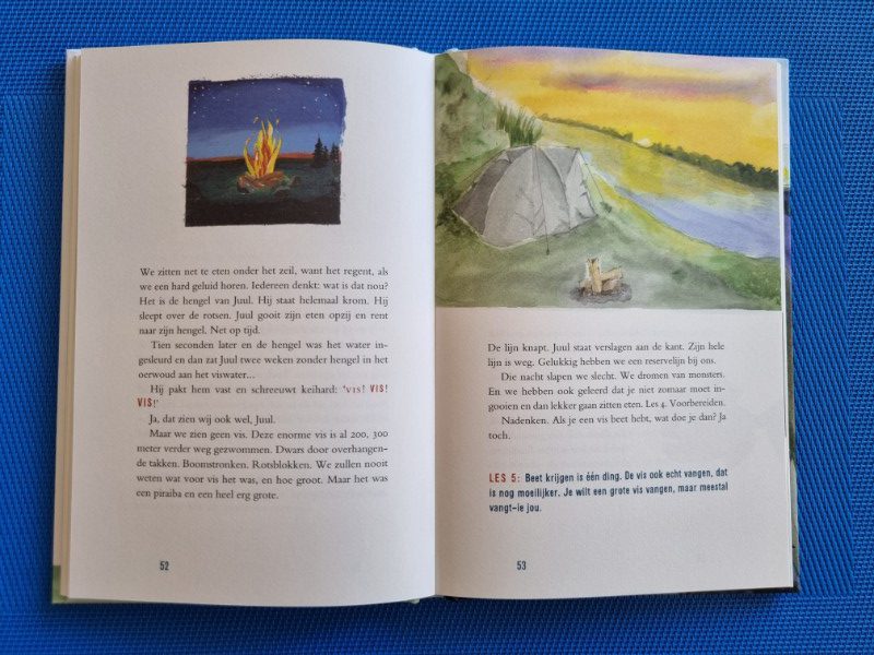 Hans Sibbel beschrijft de situaties zo beeldend dat ik zelf ook aan de waterkant naar een dobber zit te staren tijdens het lezen. De euforie van iets vangen voel ik zelf ook, als ik lees dat hij eindelijk beet heeft. In de podcast van Lemniscaat hoor ik dat alle vissen echt gevangen zijn en dat het dus een waargebeurd boek is. Dit maakt het voor mij nog leuker, omdat ik sommige reizen van Hans erg bijzonder vond.