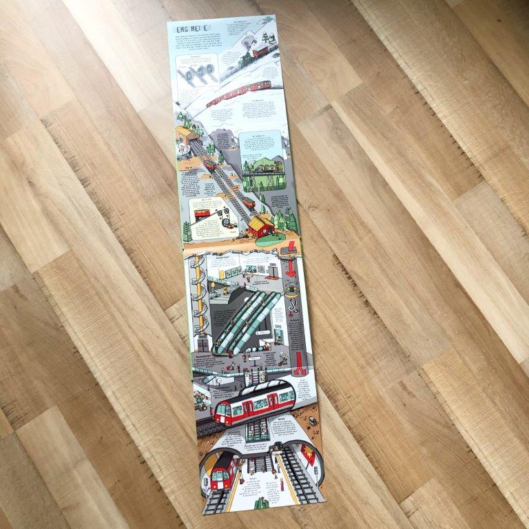 Hoe werkt een trein is fantastisch. Het is een uitgave van Lonely Planet Junior en dat merk je ook echt. De informatie is zo compleet, informatief en uitgebreid. Elke pagina is leerzaam op een leuke manier en verrast. De tekeningen zijn duidelijk en niet kinderachtig. De teksten zijn speels, maar lekker helder. De flapjes en pagina’s die uitgevouwen kunnen worden, maken het tot een toffe belevenis. Tegelijk zorgt het ervoor dat mijn dochter nog meer focus heeft op het boek. Waar zijn de flapjes, wat valt er nog meer te ontdekken? Ze is extra voorzichtig, omdat het boek speciaal aanvoelt door die extra ontdekdimensie.