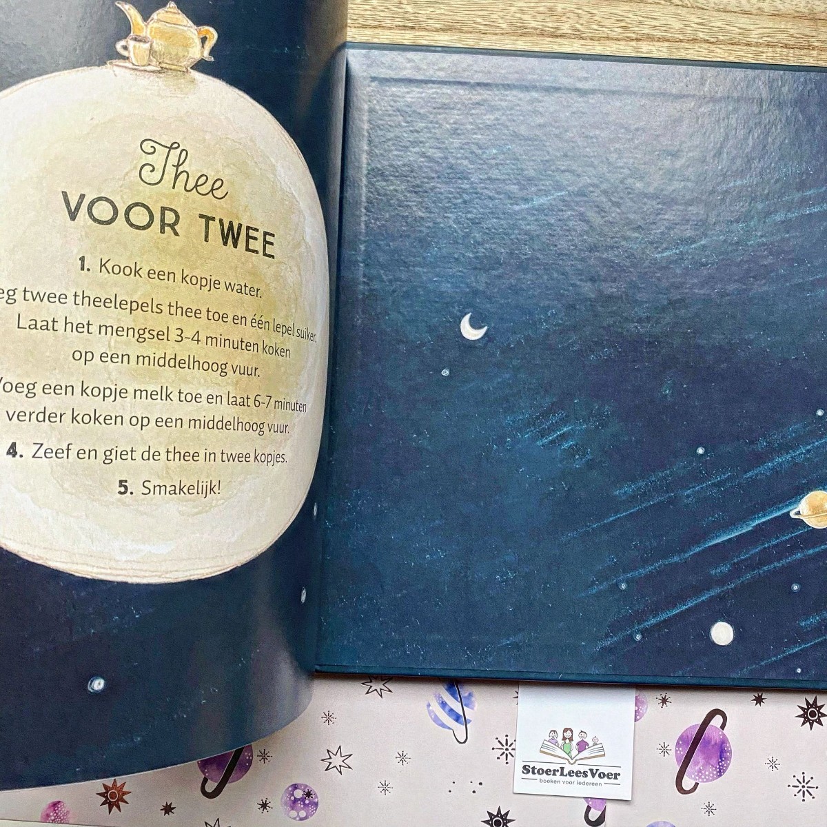 Wat een heerlijk rijk prentenboek is Hoe word je vrienden met de maan? Het laat verwonderen, dromen, voelen, lachen, mijmeren, wanderen én bevat ook nog eens een lekker recept voor thee. Wel thee zoals ze meer in het buitenland doen. Er staat namelijk ‘voeg twee theelepels thee toe’. Welke thee staat er niet? Wij Hollanders zijn toch wat meer gewend aan kant en klare zakjes. En de losse thee die ik in huis heb bevatten vaak smaakjes. Het recept doet me denken aan een Indiase chai thee, zonder alle kruiden. Ik denk dat je gewoon voor zwarte thee kan gaan. We gaan zeker het recept eens proberen als de zomer tot zijn einde komt.