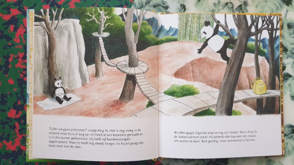 Ook dit boek begint met een speelse Xing Ya. De panda was al lang op en heeft al 10 koprollen gemaakt, in 3 bomen geklommen en 5 bamboestengels op. Wu Wen daarentegen is eigenlijk gewoon moe, ze vindt het wel gezellig met hem, maar ook vermoeiend.