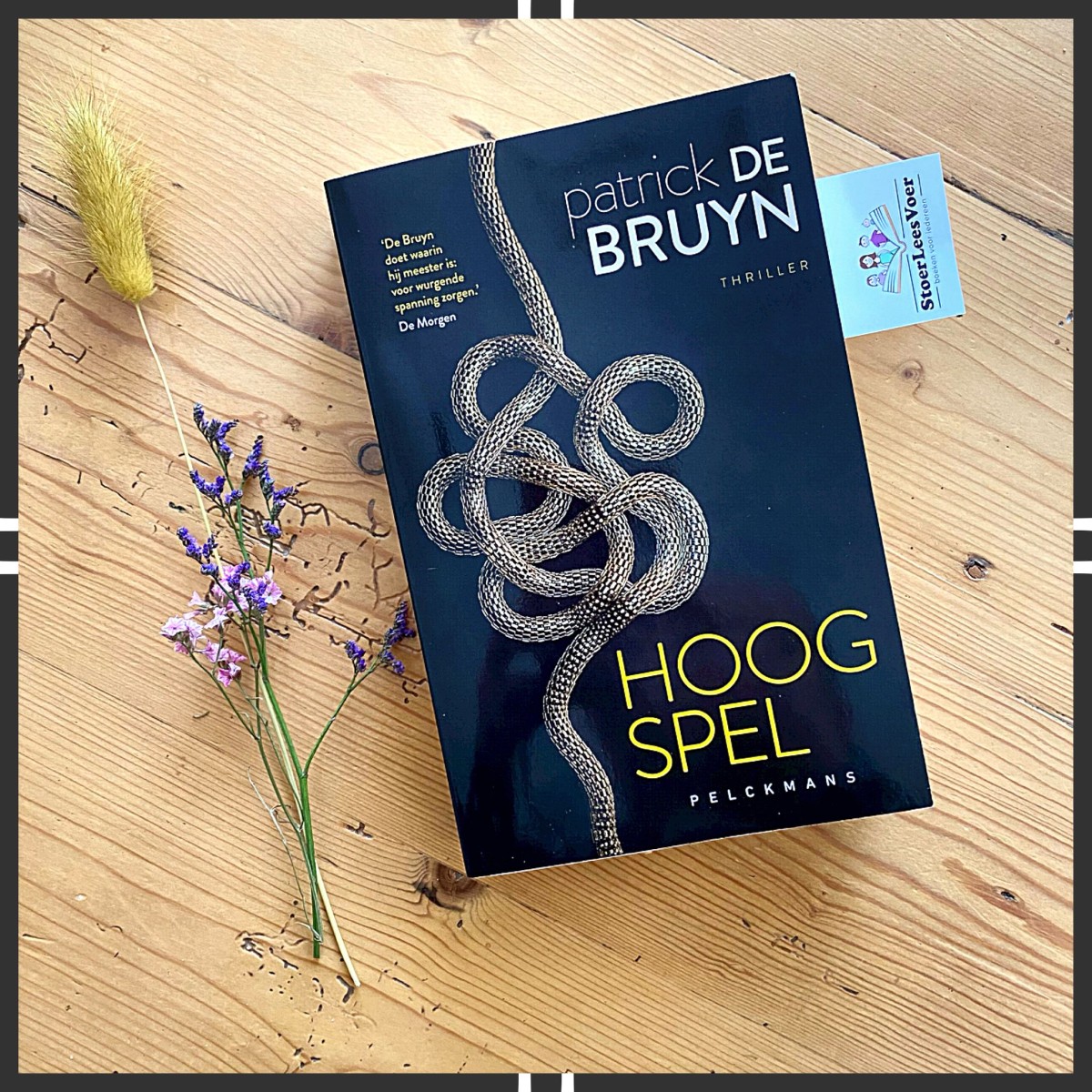 De Vlaamse Patrick de Bruyn is een misdaadauteur en Hoog spel is alweer zijn veertiende boek. Voor mij een kennismaking met deze auteur. De cover intrigeert mij al. Deze is mooi hoogglanzend zwart met een kronkelende ketting waarbij de associatie naar een slang snel gemaakt is. Op de bijgeleverde boekenlegger staat: “Doet Stephen King verbleken”. Een uitspraak die deze King fan zeer nieuwsgierig maakt. Na de knaller van een eerste hoofdstuk, wat zich afspeelt op grote hoogte, ben ik klaar voor meer!