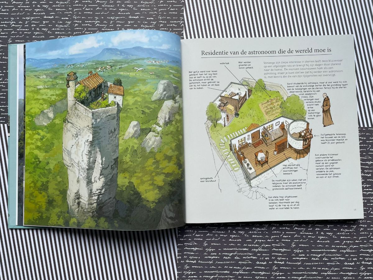 De Japanse maker van het boek leidt je ook rond in zijn eigen werkkamer. En doet bovendien uit de doeken hoe hij te werk is gegaan aan de hand van schetsen en aantekeningen.