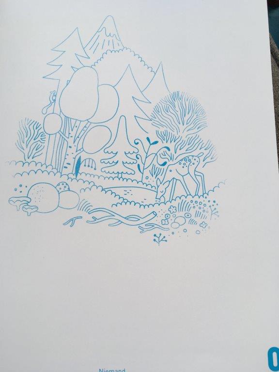 Het begint al met ‘0’, en niet met ‘1’. Een tekening van blauw op wit waarin een landschapje met een berg en een hert te zien is, maar er is ‘Niemand.’. Een goed begin, wiskundig gezien, en inderdaad is er op de tekening geen mens te bekennen. Op de pagina’s die volgen wordt keurig geteld, wat goed is voor de comfortzone van je kleuter, maar al snel blijkt dat Iedereen telt mee niet alleen voor kleuters is. Want iedereen kan meekijken, meezoeken en meefilosoferen.