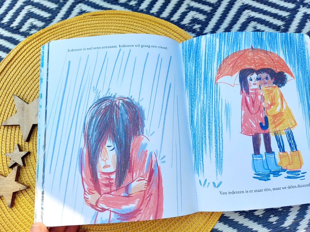 We lezen over hoe we kunnen verschillen in interesses. Schommelen of tekenen, popster of voetballer zijn. Alles kan en mag. Maar toch hebben we ook veel gemeen. We zijn allemaal wel eens boos, bang of eenzaam. Vriendschap is voor iedereen belangrijk. En de zon schijnt voor ons allemaal!