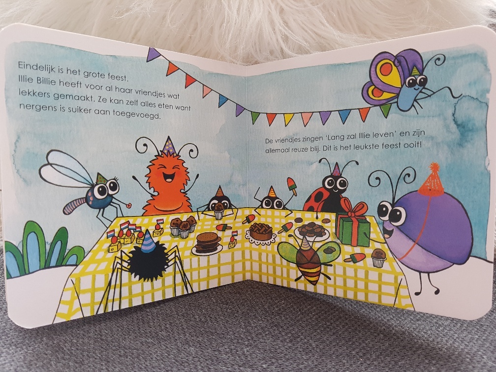 Ken jij Illie Bllie al? En Keesie Beesie dan? Nee, nou vooruit laat ik wat over ze vertellen. Illie Billie is een klein paars kevertje. En Keesie Beesie is een klein oranje rupsje. Zij staan samen met nog meer kleine kriebelbeestjes voor voedsel intolerantie en allergieën. Jessica Mendels, bekend van tv, schreef haar eerste prentenboek! Hoofdpersoon is Illie Billie die suikervrij eet. En Illie Billie geeft een feestje net zoals Jessica deed!