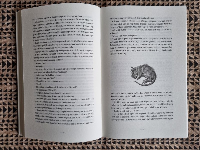De twee verhaallijnen die worden gevolgd zijn die van Thomas Hees, die ‘van de zijlijn’ probeert de kapers uit de Hollandse boten te houden en die van de passagiers van de Sint Joris. Deze laatste verhaallijn sprak mijzelf meer aan, omdat ik die hoofdstukken het meest levendig beschreven vond. Je moet overigens wel tegen wat bruut geweld kunnen. John Meilink beschrijft niet zachtzinnig hoe de passagiers van de Sint Joris werden behandeld.