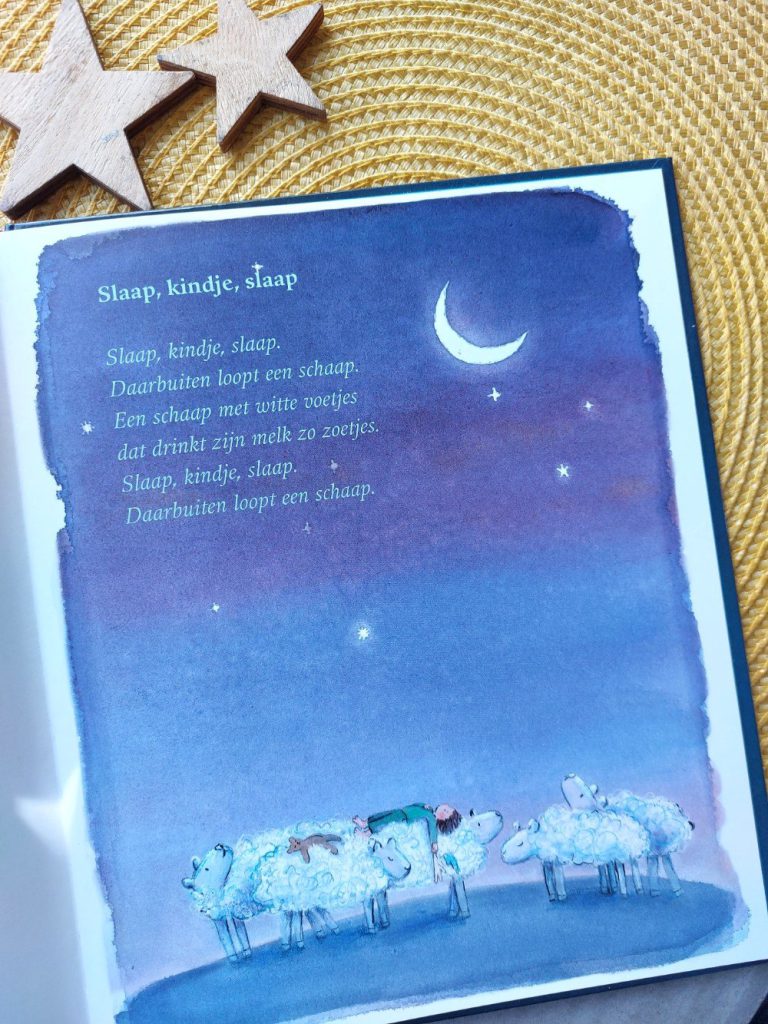 De illustratie op de kaft van het boek vinden wij direct al prachtig. Lief, verwonderend en dromerig. Gemaakt door de jonge en getalenteerde illustratrice Donna Kroese. Zij maakte ook de illustratie op de eerste bladzijde bij het liedje In de Maneschijn. Ontelbaar veel keren al gezongen en het blijft leuk! En als we verder bladeren dan zien we onder andere Beertje Pippeloentje van Annie M.G. Schmidt, Dribbel van Eric Hill en Boer Boris van Ted van Lieshout.