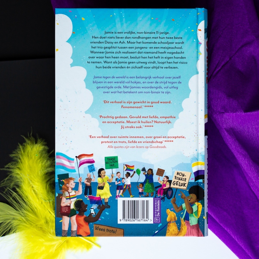 Jamie tegen de wereld is een belangrijk verhaal over jezelf blijven in een wereld vol hokjes, en over de strijd tegen de gevestigde orde. Met Jamies woordengids, vol uitleg over wat het betekent om non-binair te zijn.