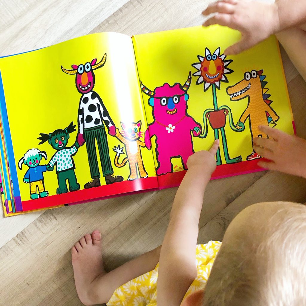 Mijn jongste dochter is nog klein maar het lijkt wel alsof ze bewust is van afwijkende dingen. Als we bijvoorbeeld een gekke hoed opzetten bij de oudste dan lacht ze zich rot, of een gekke bril. Gekke tanden in of een beetje schmink. Ze ziet dat het anders is en reageert erop. Jij bent het monster! past dus perfect in ons huis en zodra ik het boek erbij pakte om foto’s te maken en om te lezen was ik het al kwijt.