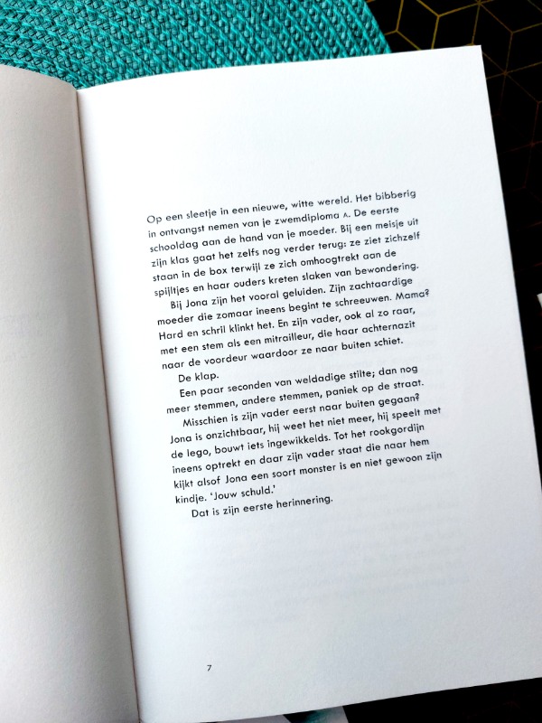 Jona is onzichtbaar, hij weet het niet meer, hij speelt met de lego, bouwt iets ingewikkelds. Tot het rookgordijn ineens optrekt en daar zijn vader staat die naar hem kijkt alsof Jona een soort monster is en niet gewoon zijn kindje. ‘Jouw schuld’. Dat is zijn eerste herinnering.