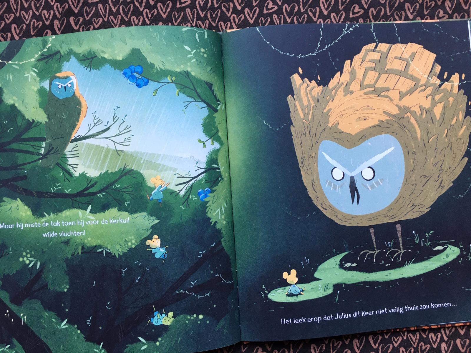 Het verhaal van Julius Muis is erg lief, vrolijk en verrassend. Het gaat over een onverwachte vriendschap. Deze vriendschap wordt enorm mooi vormgegeven in de illustraties. De ene keer zie je de situatie van een verdere afstand, de andere keer zie je juist close-ups. Dit zorgt ervoor dat je het verhaal uit verschillende perspectieven kunt bekijken. Hoe beangstigend de vos kan zijn, maar ook hun kameraadschap op het einde.