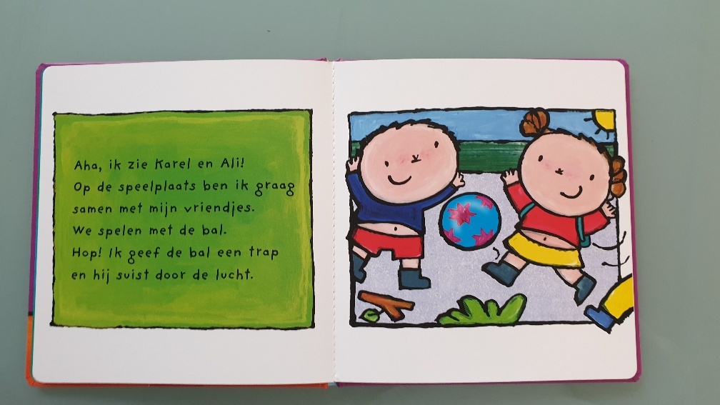 De illustraties zijn zoals we ze kennen van Liesbet Slegers. De tekstvakken zijn omcirkelt met mooie kleuren en de tekeningen zijn lekker groot en duidelijk met heldere kleuren. Het boek heeft afgeronde hoeken wat betekent dat het voor uitgeverij Clavis in de peuterlijn zit.