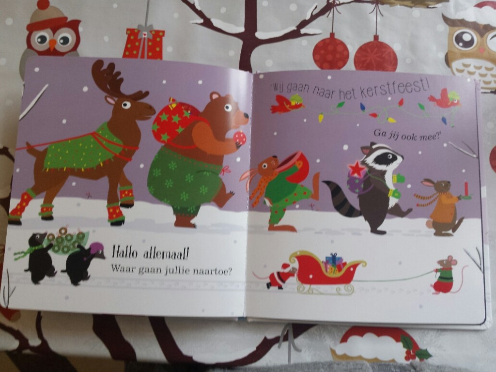Sja moet ik hier nu over uitleggen waarom het een succes is? Vorig jaar had ik het boek gekocht en toen hij bij de kerstspullen naar beneden kwam herkende dochterlief hem direct! Dat geheugen bij die jonge kinderen daar mankeert niks mee hoor. Afijn het kerst prentenboek maakt dus geluidjes. Kerstgeluidjes, lachende geluidjes en een kort liedje. De plaatjes zijn in vrolijke kleuren en mooie tekeningen gemaakt en het is vechten wie het boek mag vasthouden of op de knoppen mag drukken. En ja soms ook frusterend als ze nog niet hard genoeg kunnen drukken. Ook goed voor de fijne motoriek dus!