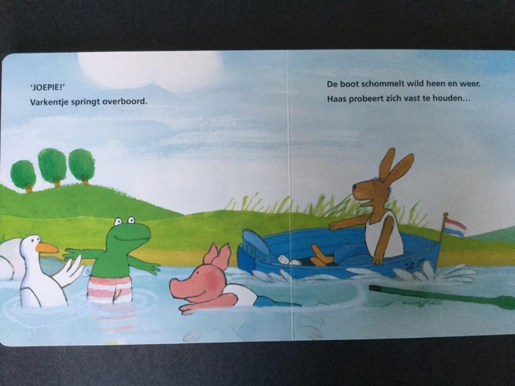 Mijn dochter is altijd dol op de verhalen van Kikker geweest. Niet alleen op de verhalen, maar ook op de figuurtjes van Kikker, Eend, Varkentje en Haas. Af en toe komt Rat op de hoek kijken. En trouwens niet alleen mijn dochter, voor mijn zoon, inmiddels 11, geldt hetzelfde. De verhalen van Kikker zijn niet alleen voor de jongere leeftijdsgroep. ‘Kikker is een held’ of ‘kikker is verliefd’ is meer geschikt voor de oudere leeftijdsgroep. Een verhaal bevat meestal ook een wijze les. In ‘Kikker gaat zwemmen’, leert Haas bijvoorbeeld zwemmen. Eerst is Haas angstig en daarna niet meer. Interessant voor kinderen die bang zijn voor water. “Zwemmen is het fijnste wat er is, zegt Kikker. ‘En iedereen kan het!’.