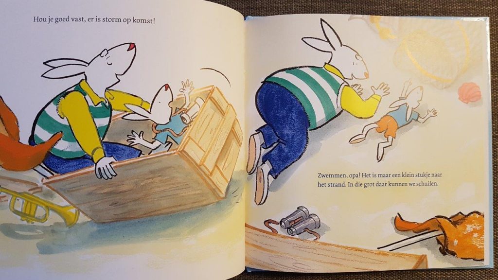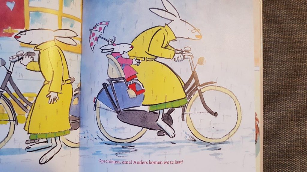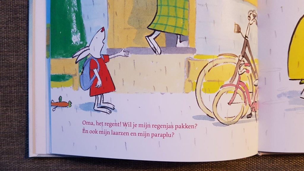 Van oma’s mag alles en kleinkinderen weten ze goed aan het werk te zetten. In dit boek, dat me, door de sprekende tekeningen met het dialoog (maar dan zonder de wolkjes) tussen Loes en oma, doet denken aan een soort uitvergroot stripverhaal, wordt oma zo’n beetje van het kastje naar de muur gestuurd. Ze doet álles uit liefde voor haar kleinkind en laat zichzelf – eigenlijk voor niks – nog helemaal natregenen ook. Een mooie toevoeging in deze kinderboeken voor opa en oma review.