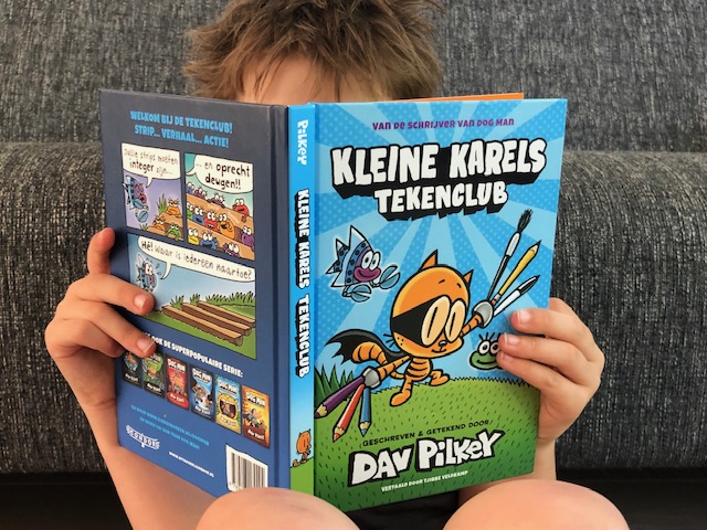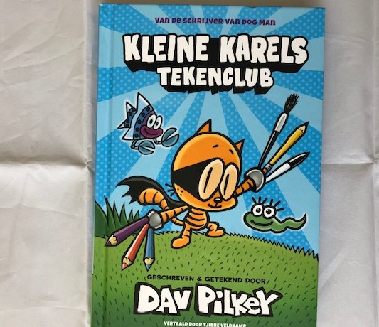 In ons gezin zijn we al een tijdje bekend met de serie Dog Man. Het is echt een hilarische strip. Ook ik moet er vaak hard om lachen. Kleine Karel is de gekloonde zoon van Karel uit de serie Dog Man. Karel is een slechte kat die niet zo slim is. Kleine Karel is een lief kereltje die het beste voor heeft, ook met zijn vader. Memorabel vind ik nog steeds de strip waarin hij continu vraagt aan zijn vader Waarom? Voor veel ouders een bekende situatie. Het kon dan ook niet uitblijven dat er over kleine Karel een eigen serie zou komen. Kleine Karels tekenclub dus. De serie Dog Man bestaat inmiddels uit 10 boeken. Dav Pilkey is ook de bedenker van Kapitein Onderbroek. Dat vinden mijn kinderen net zo hilarisch. Ik vind die serie wat minder. Dog Man kan ik ook zelf echt wel heerlijk om lachen.