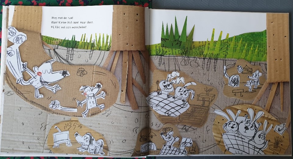 De illustraties in de Kleine Mol raast maar door zijn geweldig! Er is gebruik gemaakt van karton, stift, verf, papier, potlood, kranten en lijm. Er is flink geknutseld en van elke scène is een mooie foto gemaakt. Wij keken onze ogen uit en genoten hier dus intens van.
