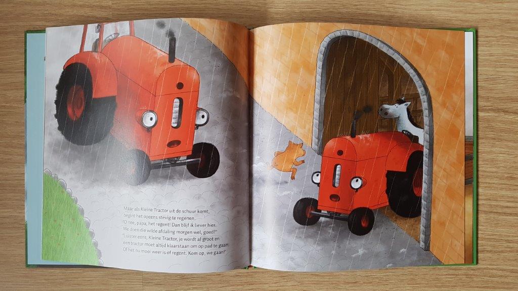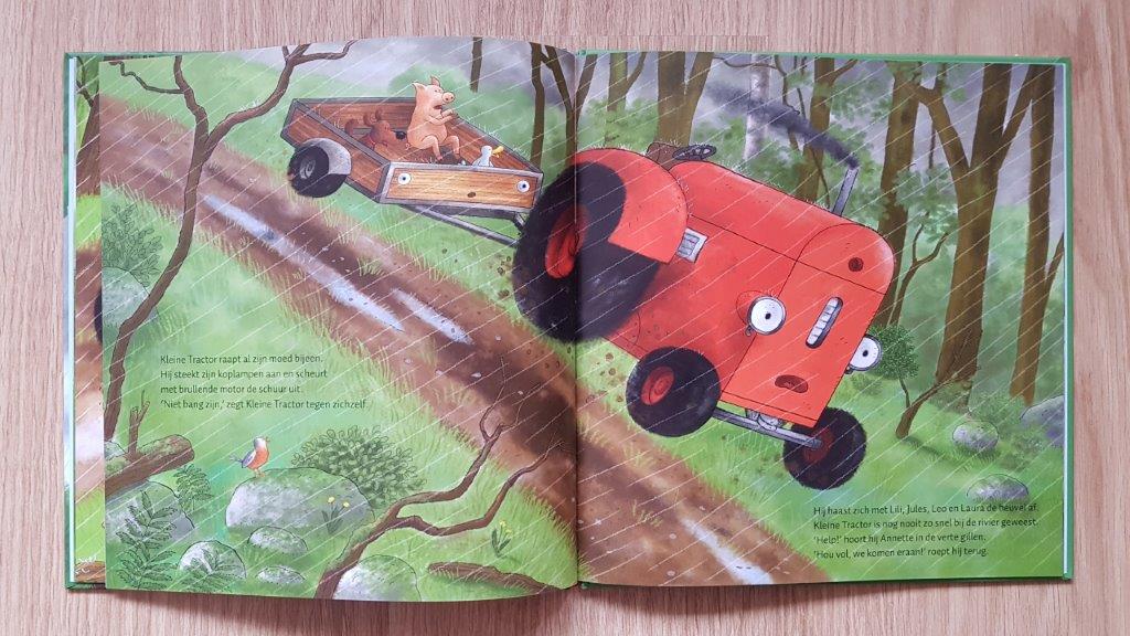 Kleine Tractor was een keer met Papa Tractor de heuvel af gereden, maar slipte en gleed toen weg. Daardoor is Kleine Tractor nu bang en wil de schuur niet meer uit als het regent. Maar dan heeft zijn vriendin Lili de aanhangwagen dringend zijn hulp nodig bij de rivier… Lees in dit boek hoe Kleine Tractor zijn angst overwint door zijn vrienden te helpen!