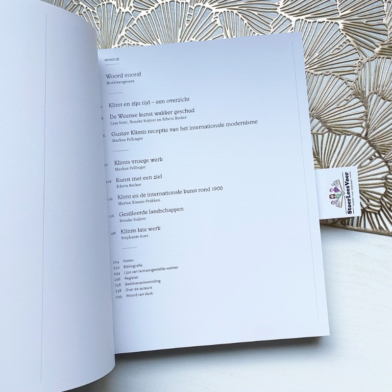 Het is geen geheim dat Klimt zich in het volle zicht liet inspireren door andere kunstenaars. In dit boek duiken we in zijn geschiedenis. Hoe hij de Weense kunst heeft wakker geschud, bijvoorbeeld. Er wordt gekeken naar zijn connectie met internationale kunst. Ook duik je in vroeg en laat werk. Het boek is prachtig opgemaakt met een geweldig passend lettertype. Ik mis alleen de schutbladen van goud, maar vooruit. Ook moet ik lachen bij de foto van Klimt, ik heb hem dus nog nooit gezien. Als kind bekeek ik zijn werk, en dacht ik bij de naam Klimt aan kunstwerken. Die tijd was ver voor het Google- en socialmediatijdperk, een tijd waarin de gezichten achter kunst inmiddels net zo belangrijk zijn. Of dat je even Google raadpleegt voor meer informatie.