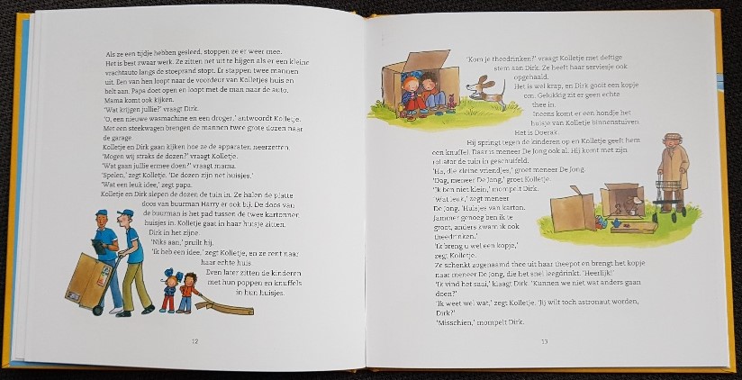 Ik kende de verhalen van Kolletje en Dirk nog niet, maar ben verrast over de leuke schrijfstijl van Pieter Feller en de prachtige illustraties van Natascha Stenvert. De pagina’s staan vol met tekeningen waarin emoties duidelijk zichtbaar zijn op de gezichten van de hoofdpersonen uit de verhalen. Inclusief een klein stukje tekst af en toe. Er zijn overigens nog veel meer delen uitgebracht van de leukste kleuters van Nederland.