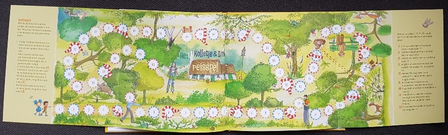 Aan de zijkanten van het bord staan de spelregels. Het doet denken aan ganzenbord en is voor kinderen vanaf 4 jaar met een kleine dosis geduld al goed te spelen. Ideaal om als boek mee te nemen tijdens een weekend weg bijvoorbeeld! Een voorleesboek en gezelschapsspel in 1.
