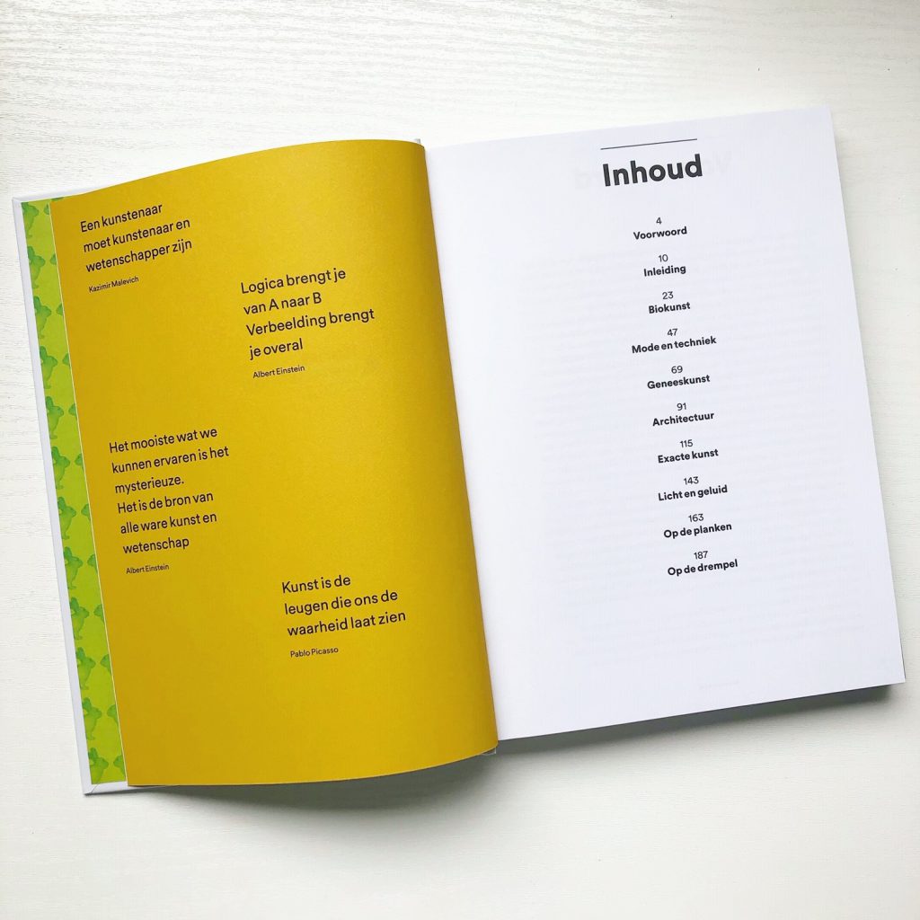 Ik heb niet een specifieke voorkeur voor 1 van beide disciplines. Wel ben ik me bewust van een kloof die heerst in de maatschappij tussen gevoel en ratio. Dat is zo zonde want het 1 kan niet zonder het ander, het vult elkaar aan. Het mooie is dat de balans in ieder mens anders is en dat maakt ons als mensen weer aanvullend naar elkaar. Het boek Kunst & wetenschap staat bomvol informatie. Hoe die 2 disciplines elkaar vinden, versterken en aanvullen is geweldig interessant en verrassend. Maar liefst 192 pagina’s telt dit boek.