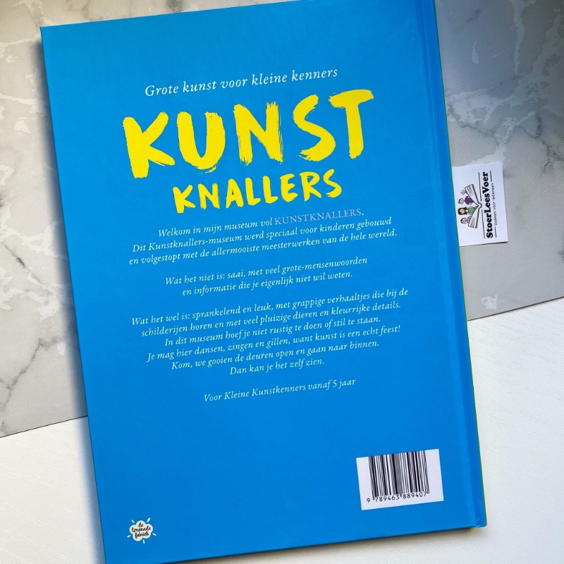 Welkom in een museum vol Kunstknallers! Dit boek van groot formaat bevat grootse kunstwerken voor jonge kenners. Vanaf ongeveer 5 jaar is dit een boek vol kunst, wat verre van saai is. Met niet saai wordt bedoeld: weinig grote mensenwoorden en zonder stoffige informatie. Dit boek is sprankelend en plezierig; je mag dansen en zingen tussen de kunstwerken! Vergaap je aan de pracht en praal, of giechel om de twists waarmee dit boek speelt.