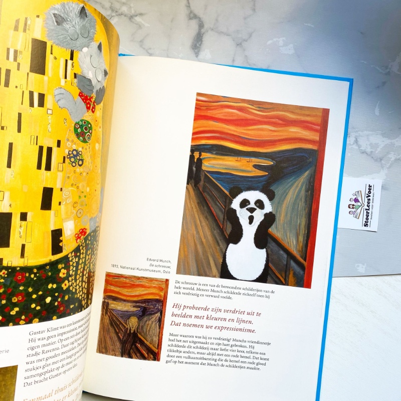 Kunstknallers is weer een uniek boek in het thema kunst voor kinderen. De toegankelijkheid van het boek is echt opvallend. Nergens is het stoffig, en overal is het speels. Het trekt kinderen echt in de bladzijden. De teksten zijn inderdaad goed voor de doelgroep, maar zijn niet kinderachtig. Zo wordt bij De schreeuw van Munch benoemd dat dit: “Een van de beroemdste schilderijen van de hele wereld is. Meneer Munch schilderde zichzelf toen hij zich verdrietig en verward voelde”. Daarna komt de uitleg waarom hij zo verdrietig was. Ik vind dit echt heel tof gedaan, wel bespreken waarom, maar op een manier waardoor het kinderen ook echt aanspreekt.