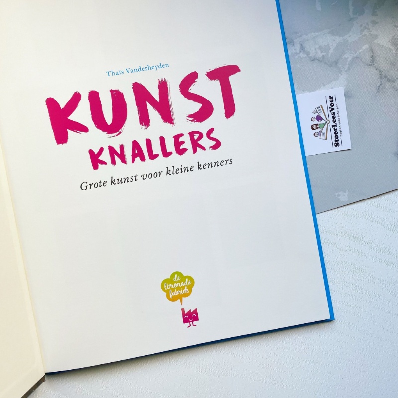 Een warm welkom dus voor eenieder die een voet wil zetten in dit bijzondere museum! Voor mij was dit een eerste kennismaking met Thaïs Vanderheyden. Ik heb dit boek blanco aangevraagd, puur op cover en thema. Ik draag het thema kunst een zeer warm hart toe en eigenlijk wil ik elk boek graag op onze boekenblog hebben. Kunstknallers is geschikt vanaf 5 jaar en weer een totaal ander soort kunstboek dan ik gewend ben. Ik dacht eerst dat de kunstwerken weer wat aangepast waren in verband met beeldrechten. Maar ik had er niet meer naast kunnen zitten.