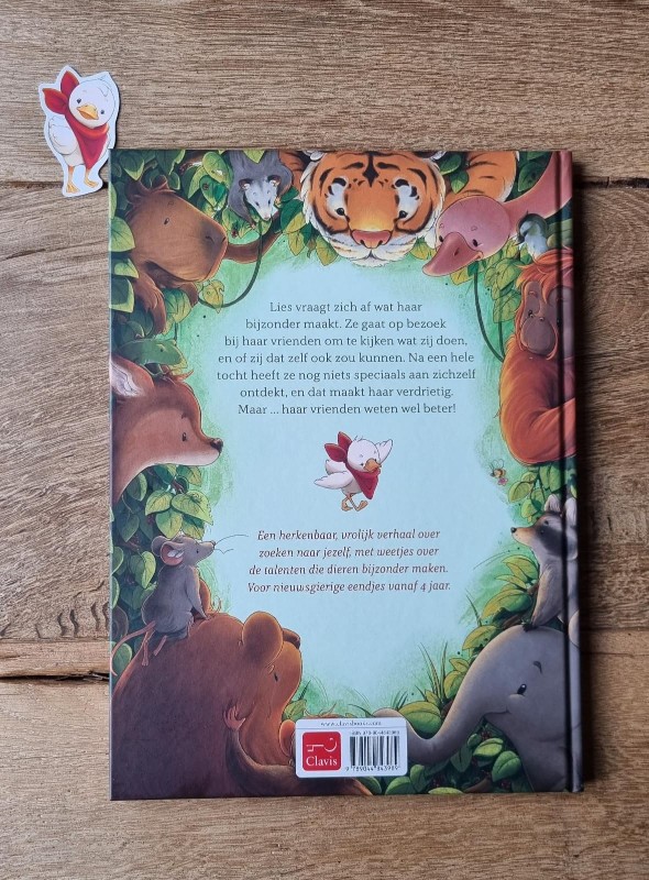 Een herkenbaar, vrolijk verhaal over zoeken naar jezelf, met weetjes over de talenten die dieren bijzonder maken. Voor nieuwsgierige eendjes vanaf 4 jaar.