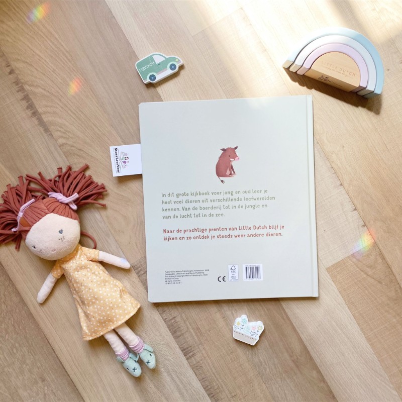 In dit grote kijkboek voor jong en oud leer je heel veel dieren uit verschillende leefwerelden kennen. Van boerderij tot jungle en van de lucht tot in de zee. Naar deze prachtige prenten in deze eerste van de twee Little Dutch boeken blijf je kijken. Zo ontdek je steeds weer nieuwe dingen bij de diverse dieren. Ik ben blij verrast dat de pagina’s van stevig karton zijn, dit boek kan dus tegen een stootje! En wat zijn de bladzijdes prachtig en kloppend gevuld. Een prachtig boek! Leuk ook, die diversiteit van dieren. Van narwal tot hamster. Een heerlijk boek!