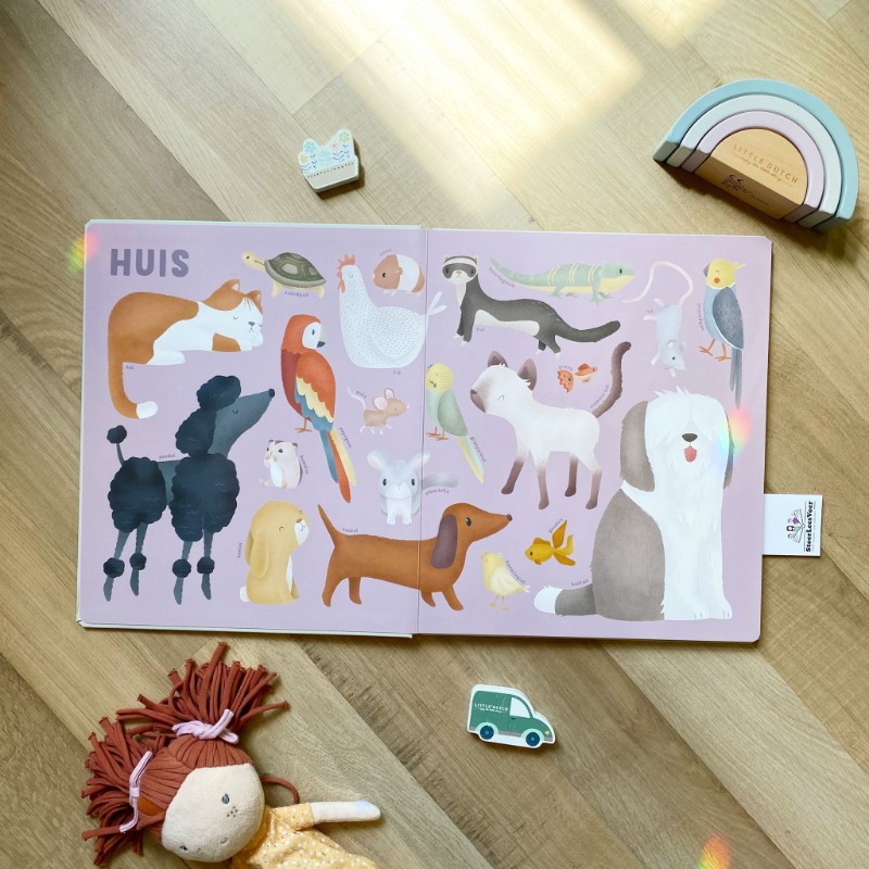 Little Dutch is erg geliefd in mijn huis. Zowel door mijzelf als door mijn kinderen. Het is een lief merk dat prachtige items voor jonge kinderen maakt. Dingen als speelgoed, slaapitems, interieur, verzorging en nu dus ook kinderboeken! Geheel met de herkenbare zachte kleuren en lieve illustraties duiken wij vandaag in de Little Dutch boeken. We beginnen met het grote Mijn eerste dierenboek en daarna in het kleinere Kom je spelen?