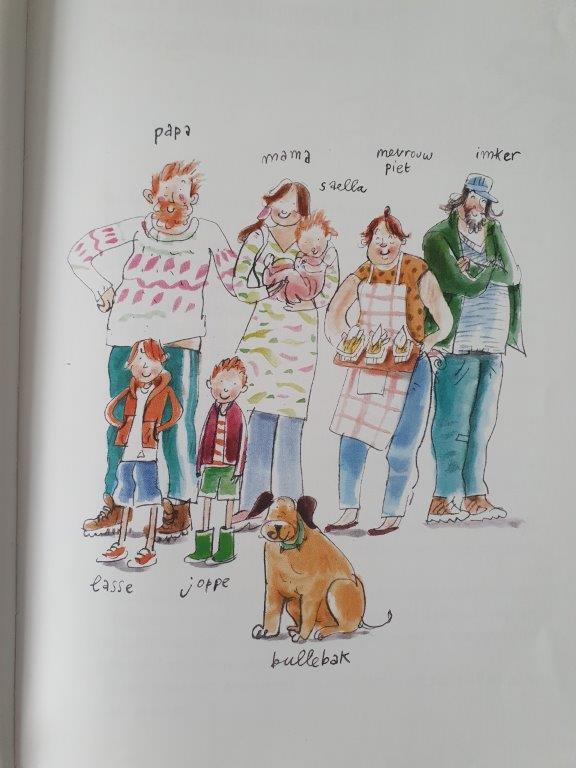 Annet Schaap ken ik als illustratrice van de Meester Jaap boeken van Jaques Vriens. Haar illustraties waren toen geestig, speels en gedetailleerd. Ook in Samen betn je niet alleen over Lotte en Roos geeft ze met haar aquareltekeningen een fijne, speelse sfeer aan de voorleesverhaaltjes waardoor het de verhaaltjes over Lotte en Roos altijd een lichtheid over zich te lijken hebben.