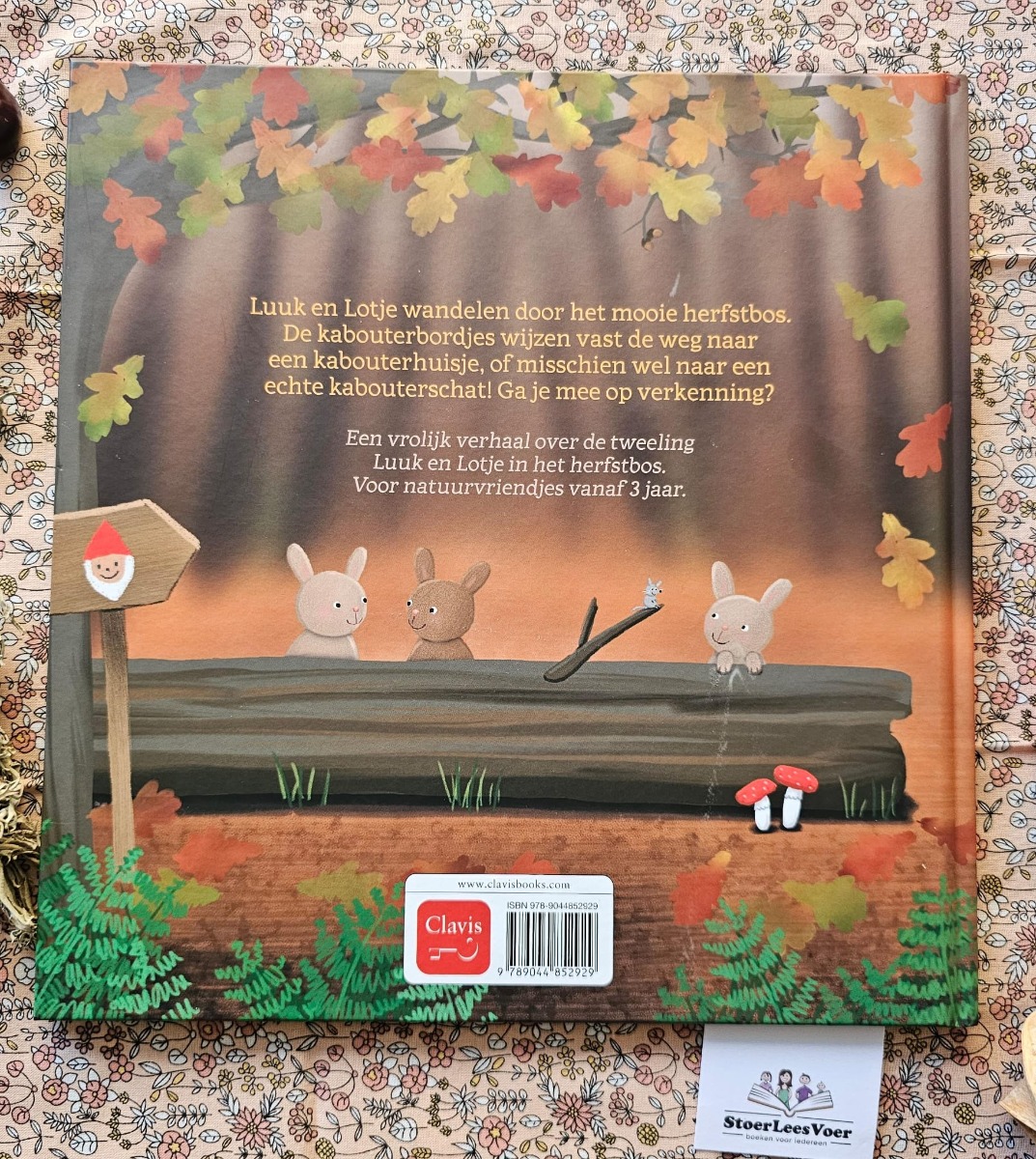 De tweeling Luuk en Lotje wandelen door het mooie herfstbos. De kabouterbordjes wijzen vast de weg naar een kabouterhuisje, of misschien wel naar een echte kabouterschat! Ga je mee op verkenning?