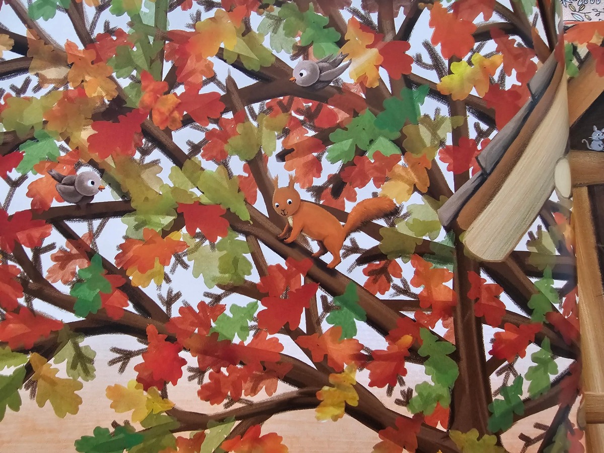 Dit boek staat vol met dieren die zich verstoppen terwijl Luuk en Lootje in het herfstbos zijn.