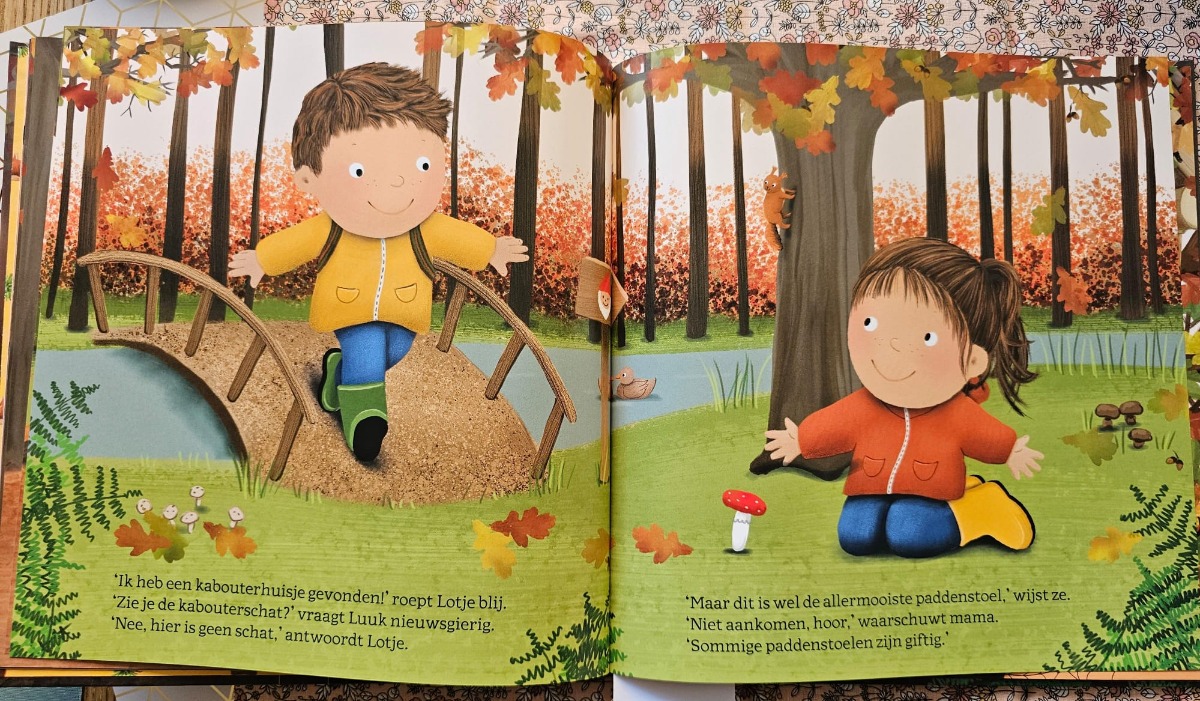 Als ik Luuk en Lotje het herfstbos in handen heb word ik blij. Niet alleen omdat ik weet dat Ruth Wielockx goede prentenboeken schrijft, maar omdat de herfst eraan komt. En nee ik houd niet van de regenachtige dagen, maar wel van al die bijzondere schatten die we in de natuur kunnen vinden en waar je zo heerlijk met kinderen mee aan de slag kan. En dat een prentenboek daar dan de start van kan zijn.