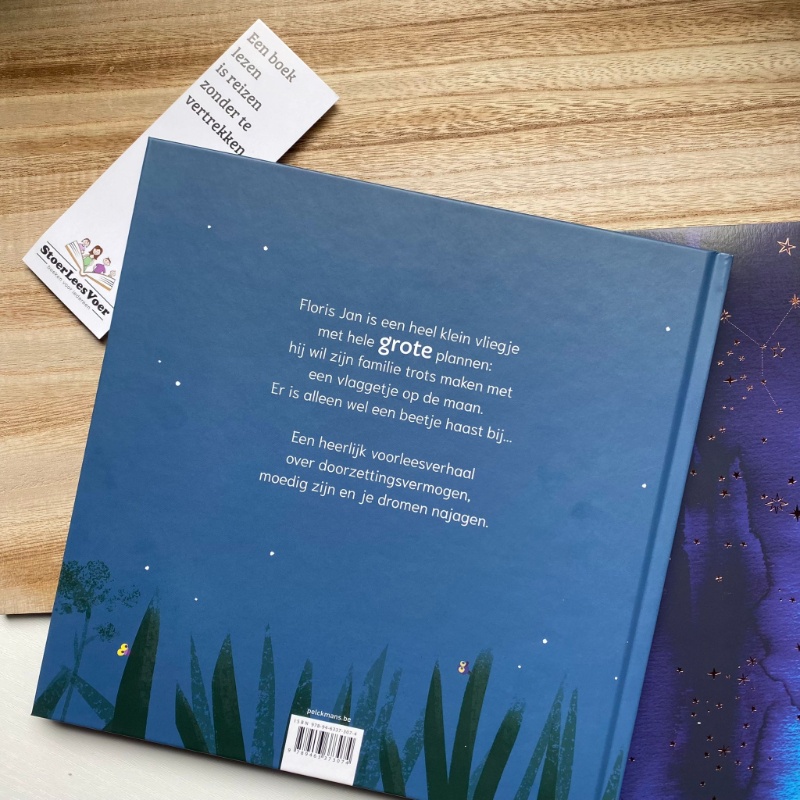 Floris Jan is een heel klein vliegje met hele grote plannen: hij wil zijn familie trots maken met een vlaggetje op de maan. Er is alleen wel een beetje haast… Dit is een heerlijk voorleesverhaal over doorzettingsvermogen, moedig zijn en je dromen najagen. Marije Siezenga schreef en illustreerde eerder een speciaal prentenboek voor haar zoon, maar is in het dagelijks leven vooral peuterjuf én ze schildert. Oirik (Erik Nieuwenhuis) heeft als schrijver en illustrator al meerdere titels op zijn naam staan. Ze zijn inmiddels al een aantal jaren een koppel en werkten voor het boek Maan voor het eerst samen!