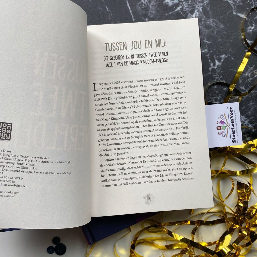Niet lang geleden bestempelde ik het boek Tussen twee vuren als één met de tofste locatie van dit jaar. Wel duurde het lang voor mijn gevoel voordat het tweede deel van de trilogie eindelijk gelezen kon worden. Het eerste boek wist me te verrassen. Het is een dystopisch verhaal, met ontzettend veel toffe laagjes, karakters en easter eggs. Ik gaf in mijn recensie van toen al aan dat er wat dingen opvielen. Daarbij kondigt auteur Laura Diane aan dat Magic Kingdom 2 – Tussen twee werelden met een extreme plottwist komt. De verwachtingen liggen dus best wel hoog… Kan Diane dit waarmaken? Lees vooral verder als je antwoord op die vraag wilt weten. En ik beloof jullie, geen spoilers!