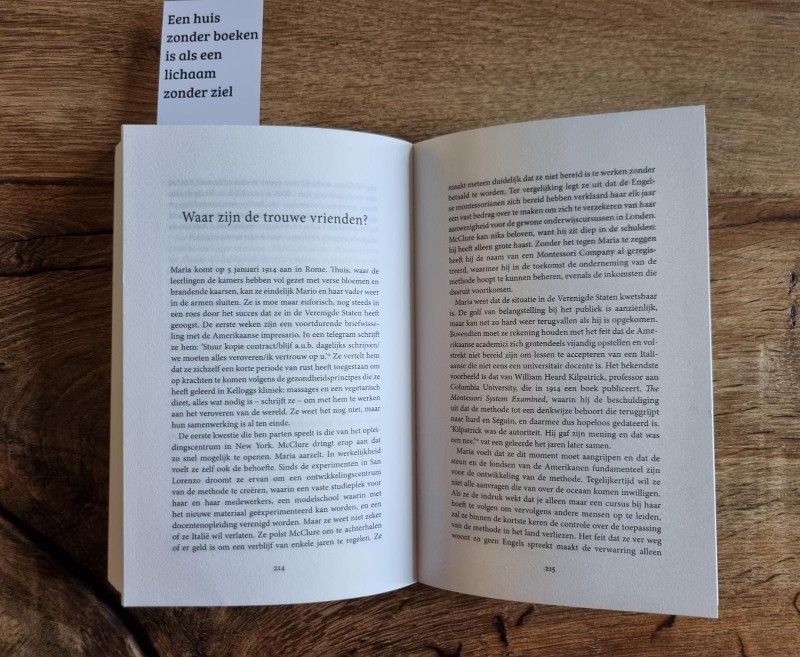 Ik ben een echt onderwijsmens, dus een boek over onderwijs spreekt mij meestal direct aan. Maria Montessori gaat, zoals haar naam al doet vermoeden, de grondlegger van het huidige Montessori onderwijs. Zelf werk ik op een jenaplanschool, een andere vorm van vernieuwingsonderwijs. Ik heb mij nooit verder verdiept in Montessori, dus het boek Maria Montessori kwam voor mij heel gelegen.