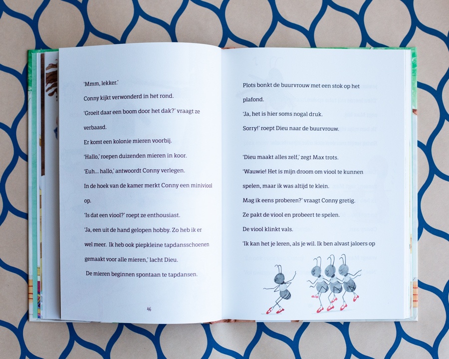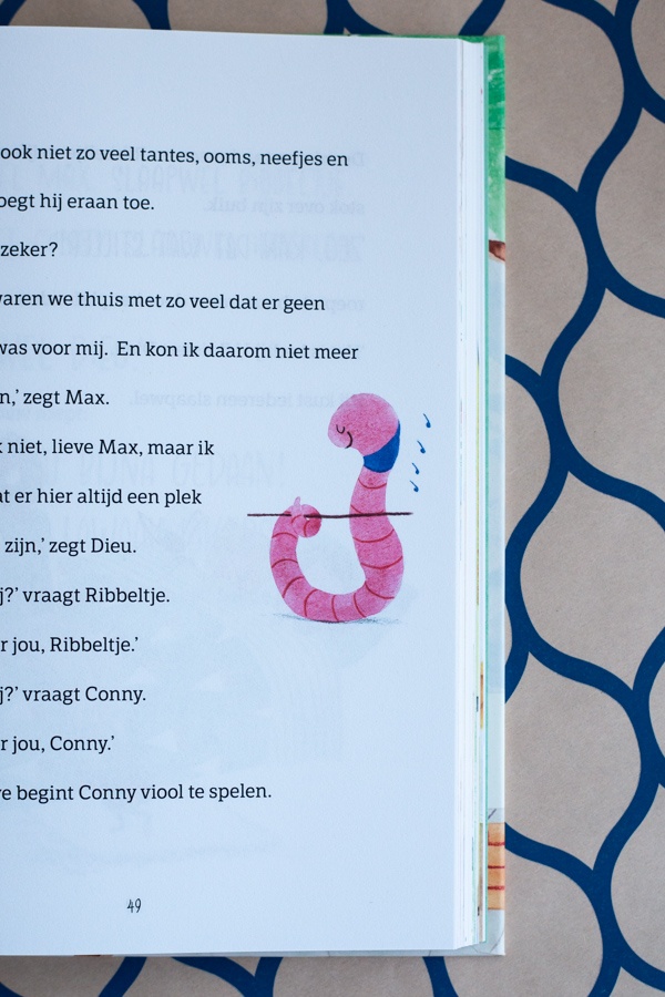 Door het grotere lettertype dacht ik dat Max en Ribbeltje een leuk boek voor de beginnende lezer zou zijn. Er staat echter vermeld dat Max en Ribbeltje zelf te lezen is vanaf 8 jaar en eerder als voorleesboek mag worden beschouwd. Neemt niet weg dat de korte zinnen, grotere letters en fijne witruimte tussen de regels zich prima lenen voor een jonge lezer die wat uitdaging zoekt. Bovendien leest dit verhaal in ieder geval fijn weg. En de soms wat langere woorden mag je toch best even navragen?