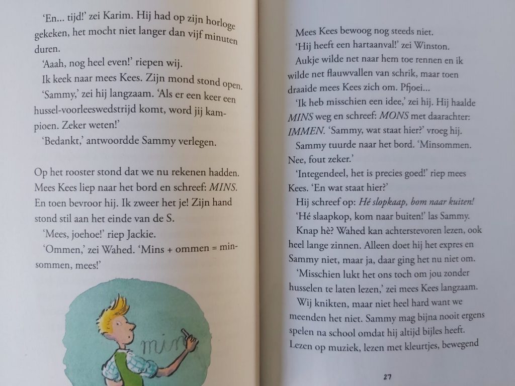 De klas van Mees Kees denken dat ze mee mogen doen met de voorleeswedstrijd en kiezen uiteindelijk Samy om namens hun klas mee te doen. Maar dan ontdekken ze dat de Nationale Voorleeswedstrijd alleen voor groep 7 en 8 is. Jammer voor Sammy. Samy vindt voorlezen erg lastig, want hij husselt de woorden en leest dus niet wat er echt staat. Maar voorlezen kan hij wel. De klas hangt aan zijn lippen ook wel weten ze niet wat hij voorleest. Daarom is het extra jammer dat groep 6 niet mee mag doen. En dan wil zijn moeder ook nog dat hij naar 6A gaat, want ze vindt dat hij bij Mees Kees, de stagiair niet leert lezen. Komt het goed? Zorgt Mees Kees voor de husselrace?