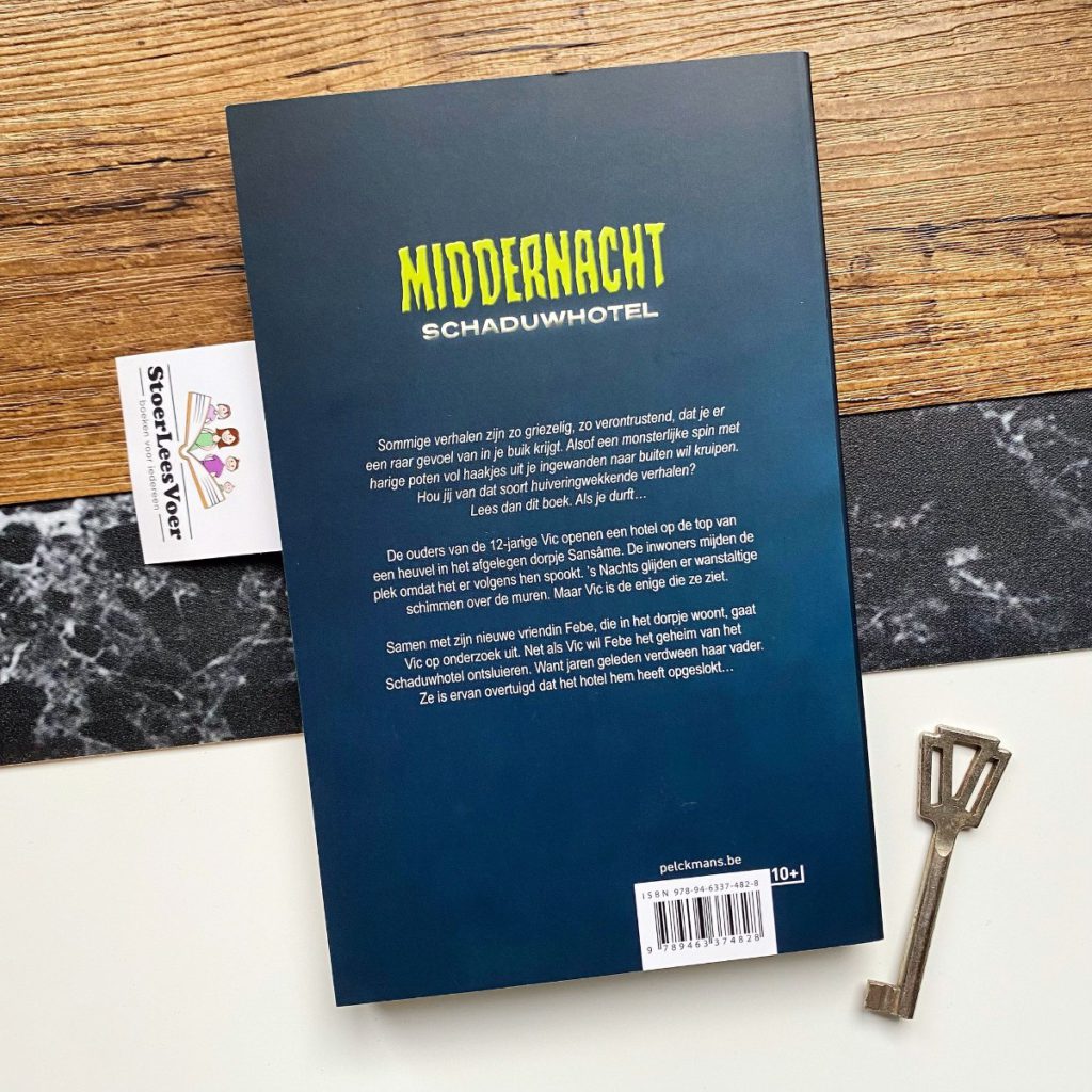 Boekenserie Middernacht: Sommige verhalen zijn zo griezelig, zo verontrustend, dat je er een raar gevoel van in je buik krijgt. Alsof een monsterlijke spin met harige poten vol haakjes uit je ingewanden naar buiten wil kruipen. Hou jij van dat soort huiveringwekkende verhalen? Lees dan dit boek Middernacht Schaduwhotel. Als je durft…