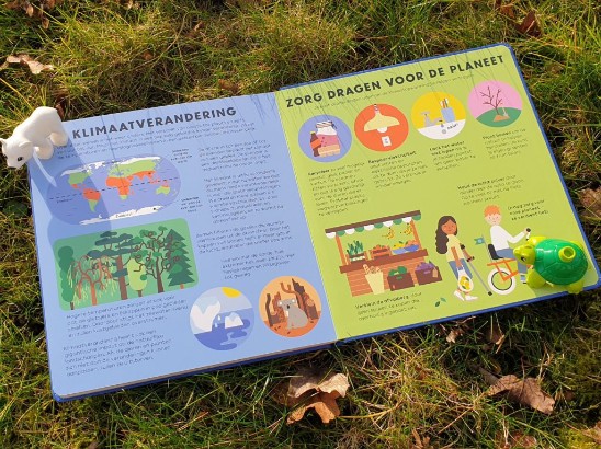 In het boek leren kinderen over klimaatverandering. En worden zij vervolgens bewust gemaakt van de impact hiervan.