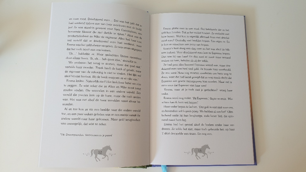 Termen als New Forest pony, Shetlander, Halflinger, Arabier, bles, ruin , schoft komen in de eerste pagina’s al voorbij. In mijn eigen droompaard is dan ook een echt paardenboek voor zelflezende meisjes vanaf 8 jaar ongeveer.