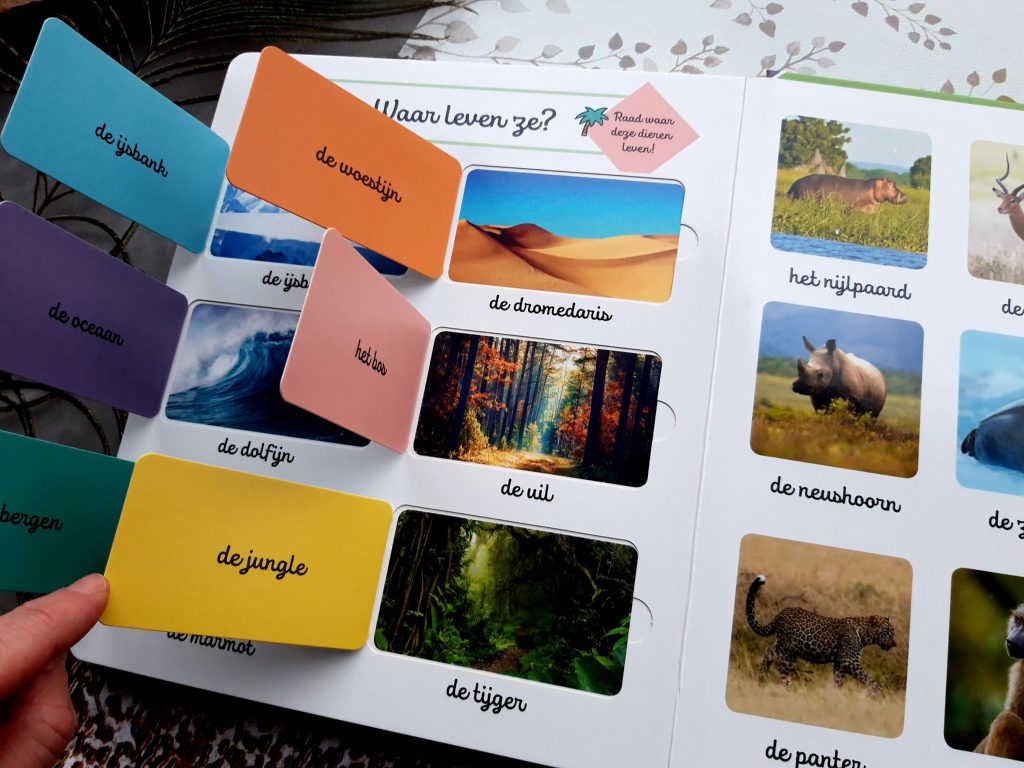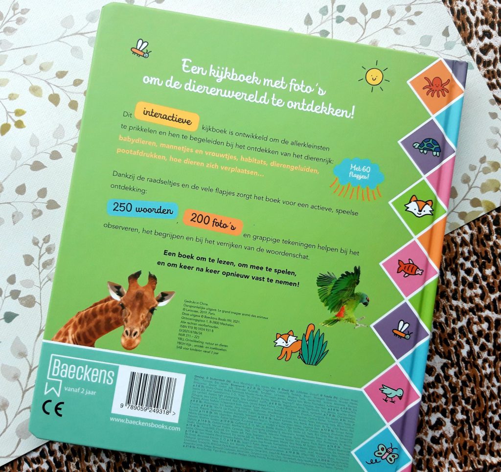 Het leuke van dit kijkboek met dieren is natuurlijk dat het heel interactief is. Op een speelse manier kunnen kinderen van alles ontdekken. En het is echt een dik boek om lekker lang over te doen. Zeker als je alle 60 flapjes wilt ontdekken! Het zijn stevige kartonnen bladzijden, en dat is natuurlijk wel fijn omdat we willen dat dit boek lang meegaat.