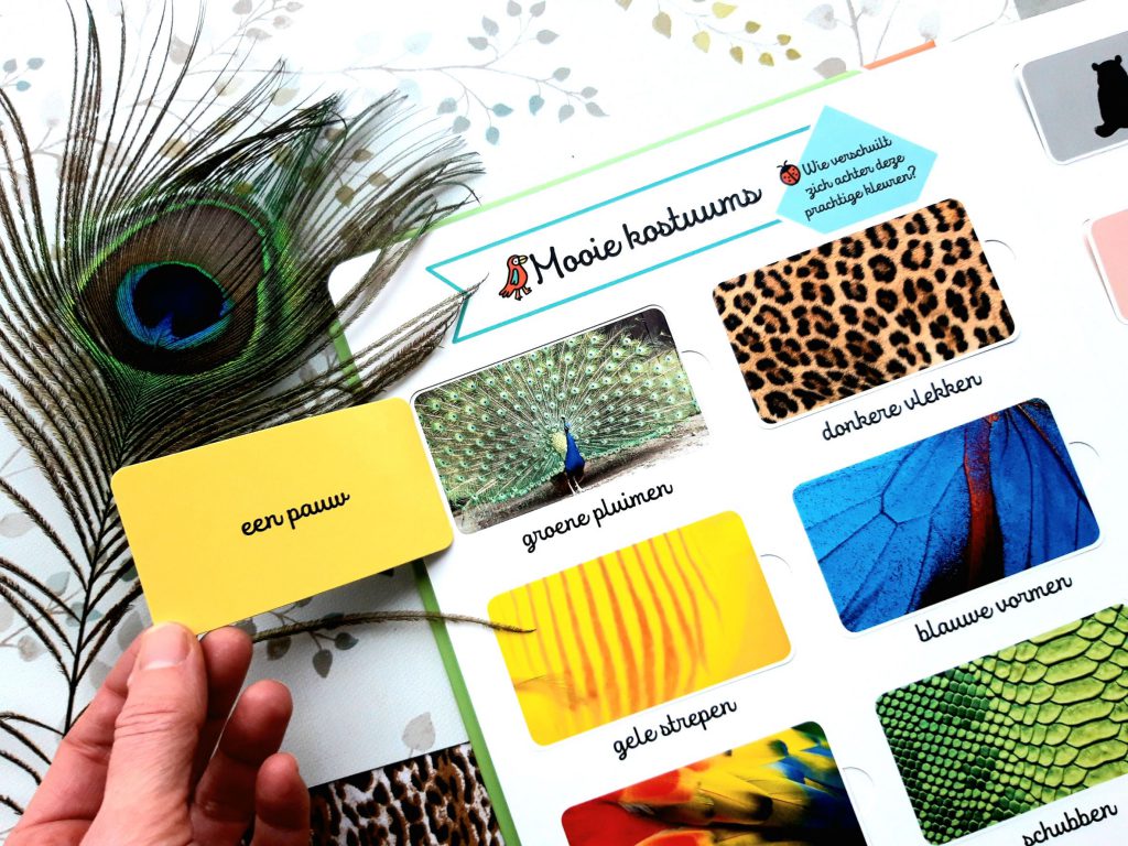 De foto’s en afbeeldingen zijn heel kleurrijk. Bijvoorbeeld op de bladzijde met de mooie kostuums. We kijken onze ogen uit, van de luipaardvacht tot de verenpracht van de papegaai. En ook nog eens een goede manier om de kleuren te leren!